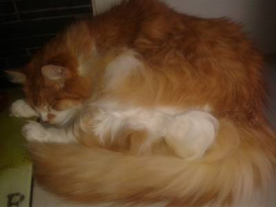 Ich beschrieb Aramis, er sein ein rot weißer Maine Coon